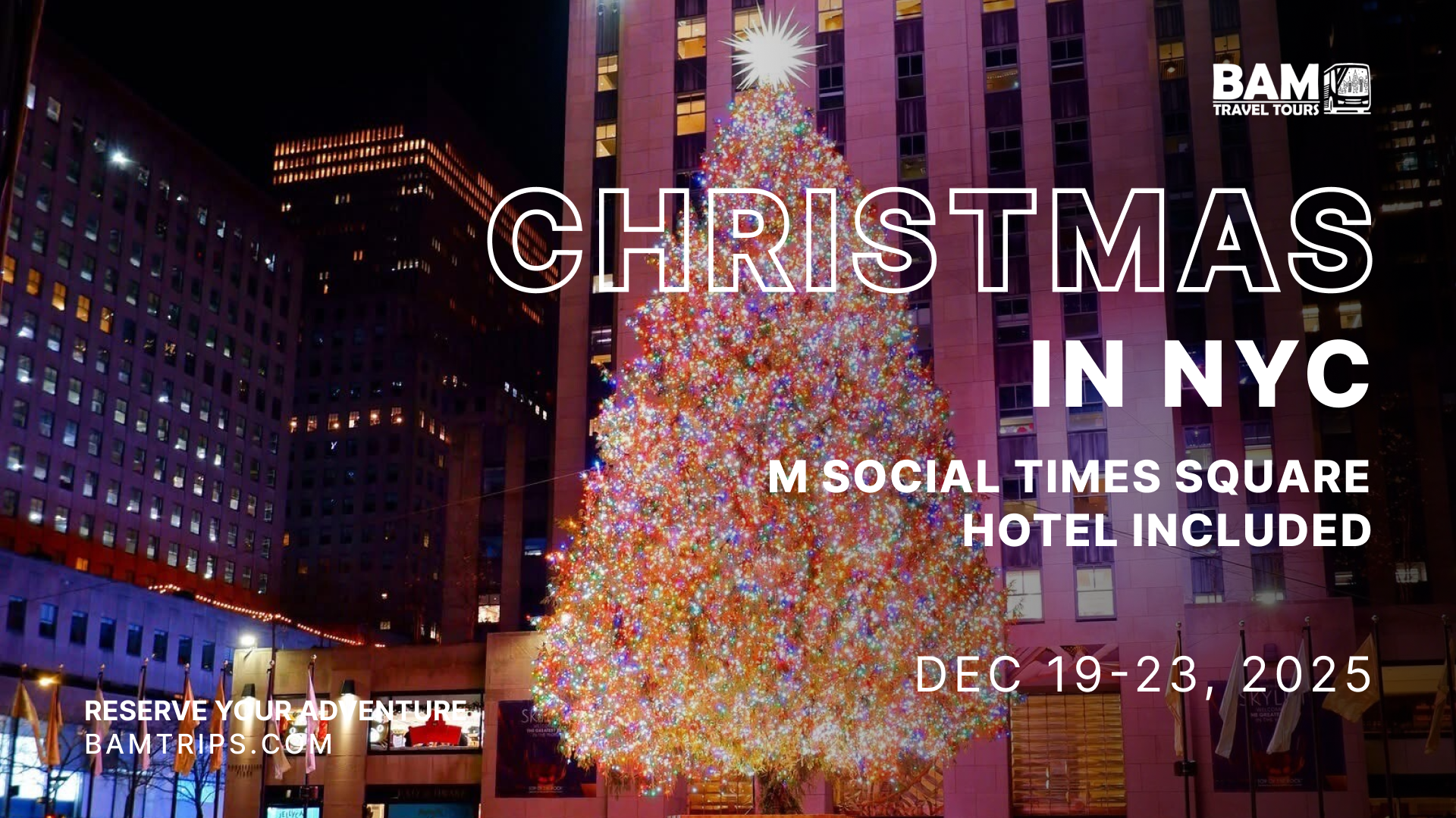 Spend three magical days and two festive nights in New York City this holiday season with BAM Travel Tours! Stay just steps from Times Square at the M Social Hotel, and enjoy everything the city has to offer — from twinkling lights and world-famous window displays to iconic landmarks and endless shopping.
